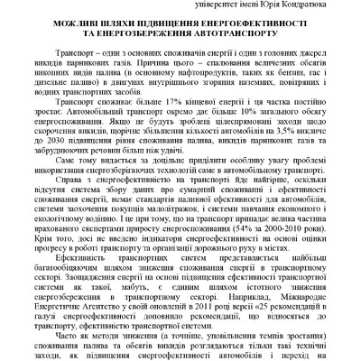 Можливі шляхи підвищення енергоефективності та енергозбереження автотранспорту