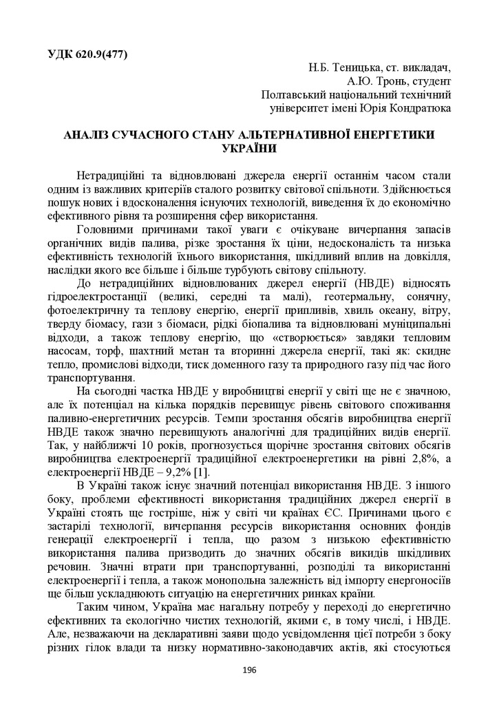 Стаття 2018/05/07Аналіз сучасного стану альтернативної енергетики України