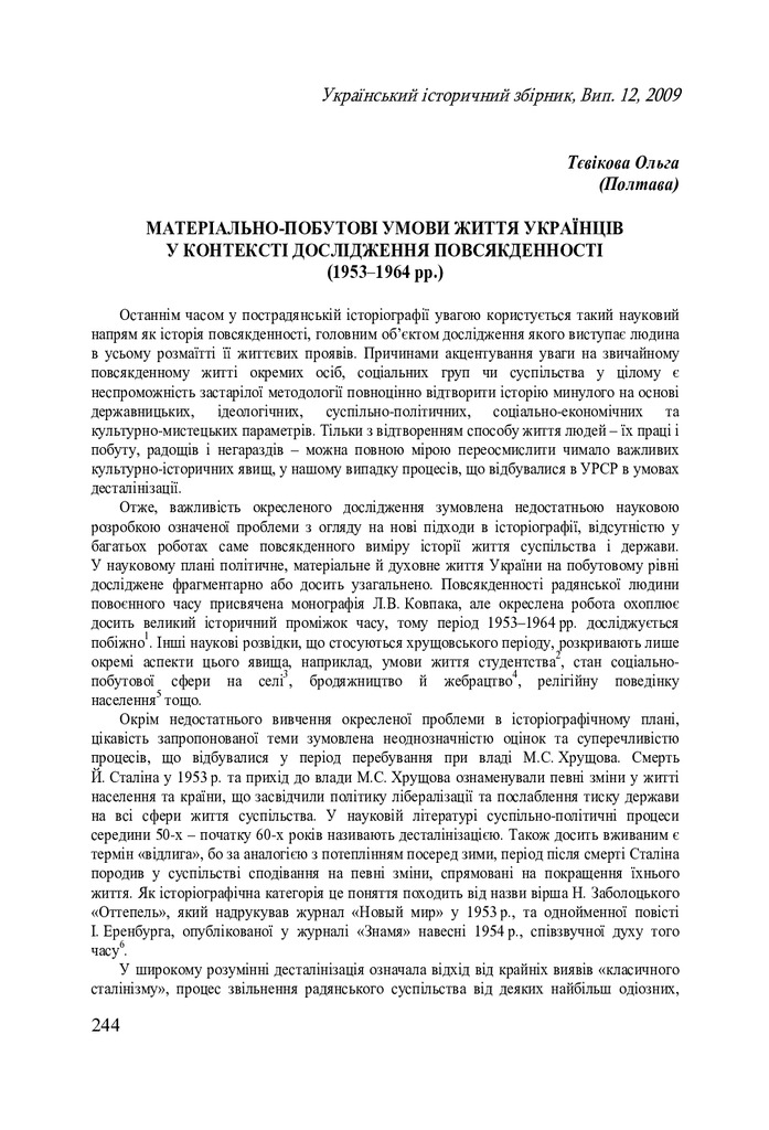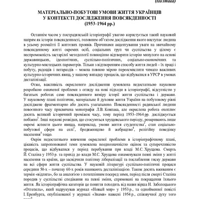 Стаття 2019/02/25Material everyday culture of the Soviet Ukrainians during Khrushchev’s thaw (1953 - 1964)
