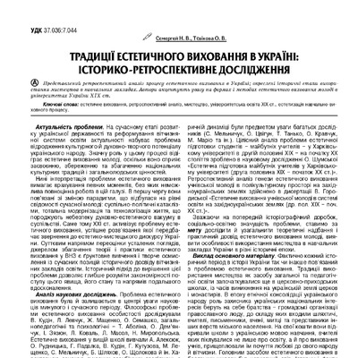 Стаття 2020/05/06Традиції естетичного виховання в Україні: історико-ретроспективне дослідження