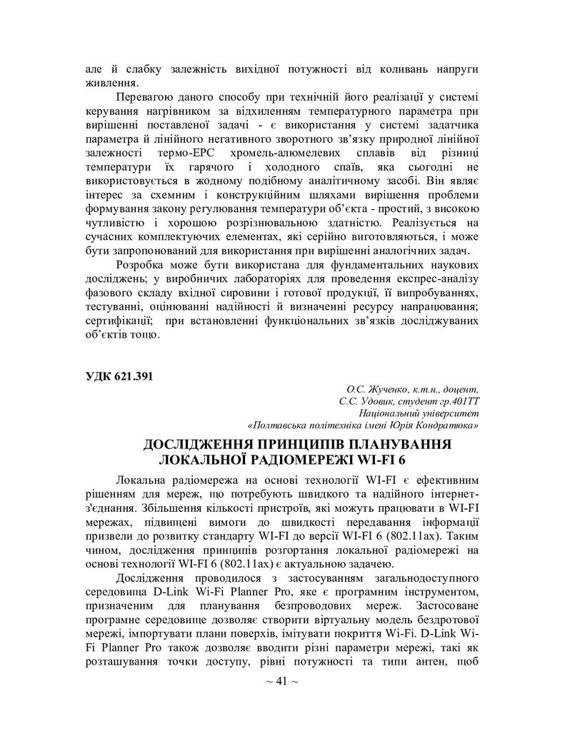 Стаття 2024/01/12Дослідження принципів планування локальної радіомережі WI-FI 6
