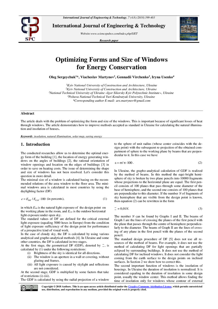 Стаття 2023/01/12Optimizing forms and size of windows for energy conservation