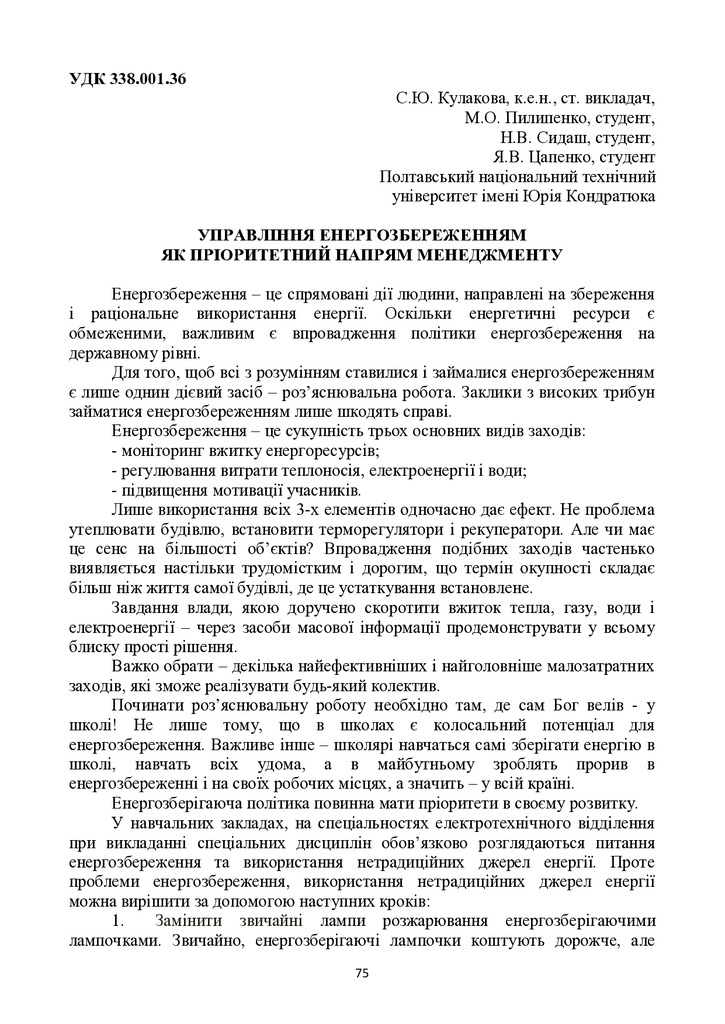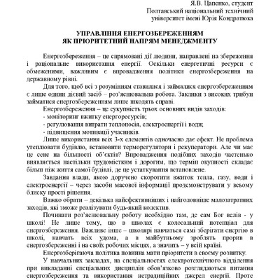 Управління енергозбереженням як пріоритетний напрям менеджменту