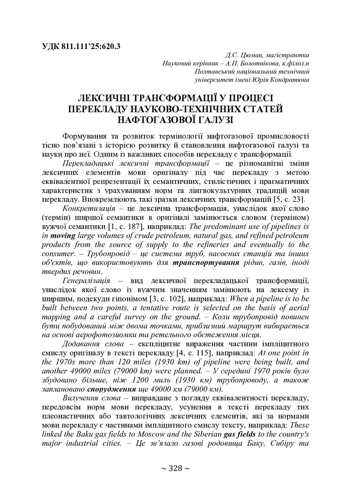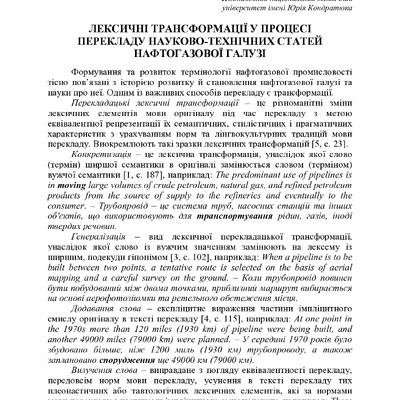 Лексичні та граматичні трансформації у процесі перекладу науково-технічних статей нафтогазової галузі