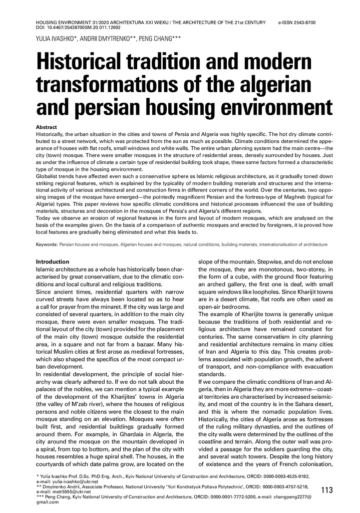 Стаття 2021/02/02Historical tradition and modern transformations of the Algerian and Persian housing environment