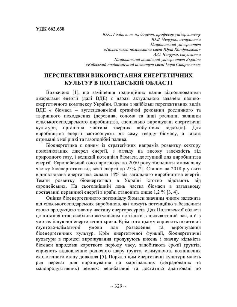 Доцільність та актуальність застосування енергетичних культур в якості біомаси для твердого палива доведено багатьма вітчизняними та іноземними науковцями протягом декількох останніх десятиліть. ...