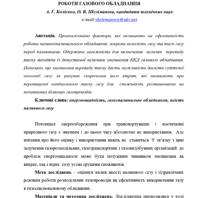Стаття 2020/08/02Вплив параметрів природного газу на показники роботи газового обладнання