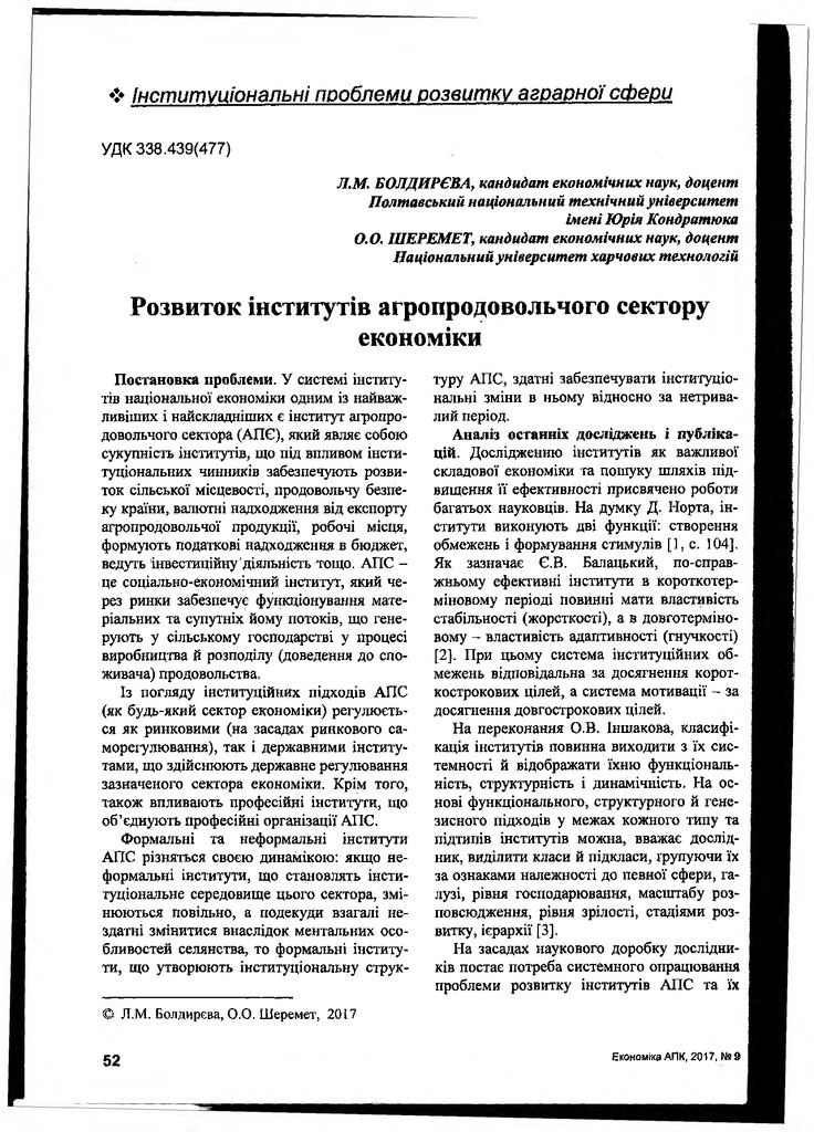 Розвиток інститутів агропродовольчого сектору економіки