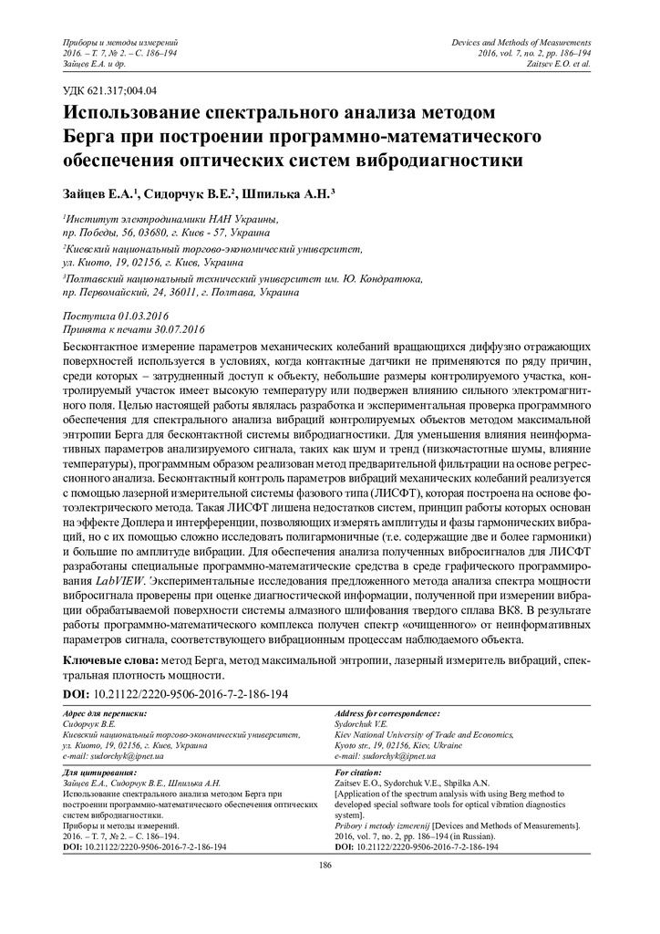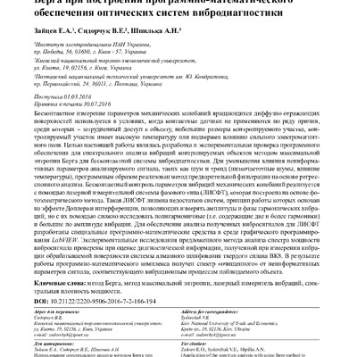 Стаття 2020/03/03Использование спектрального анализа методом Брега при построении програмно-матемаического обеспечения оптических систем вибродиагностики
