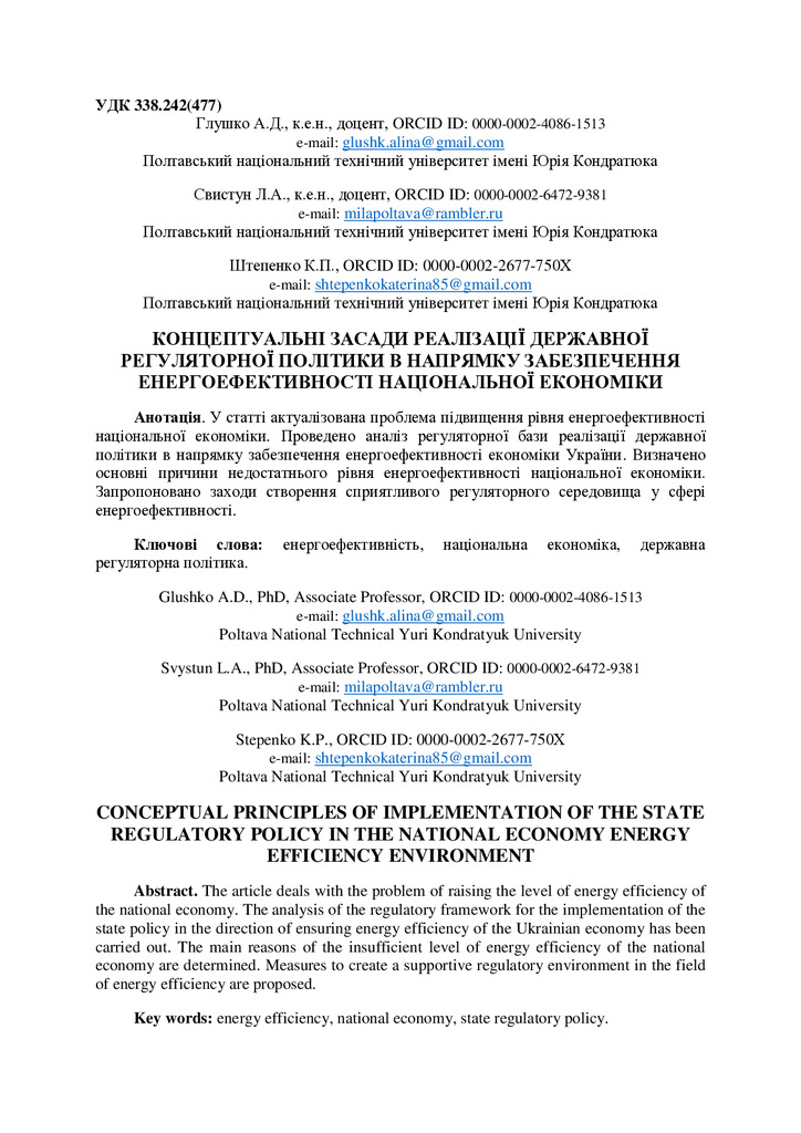 Концептуальні засади реалізації державної регуляторної політики в напрямку забезпечення енергоефективності національної економіки