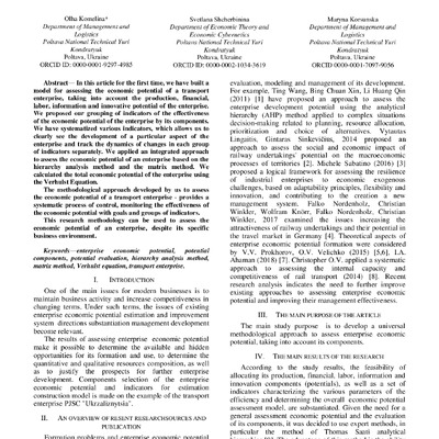 In this article for the first time, we have built a model for assessing the economic potential of a transport enterprise, taking into account the production, financial, labor, information and innov...