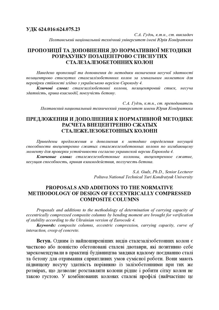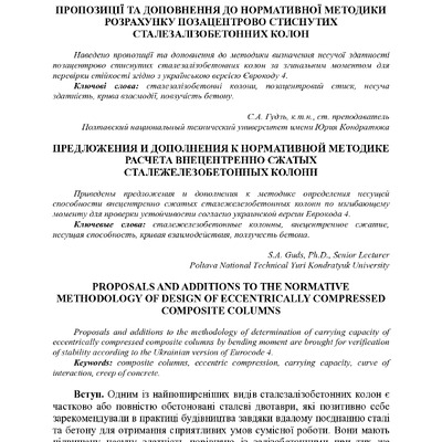 Стаття 2016/11/24Пропозиції та доповнення до нормативної методики розрахунку позацентрово стиснутих сталезалізобетонних колон