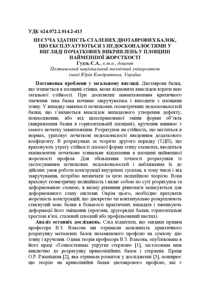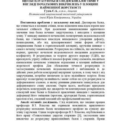 Стаття 2017/07/12Несуча здатність сталевих двотаврових балок, що експлуатуються з недосконалостями у вигляді початкових викривлень у площині найменшої жорсткості