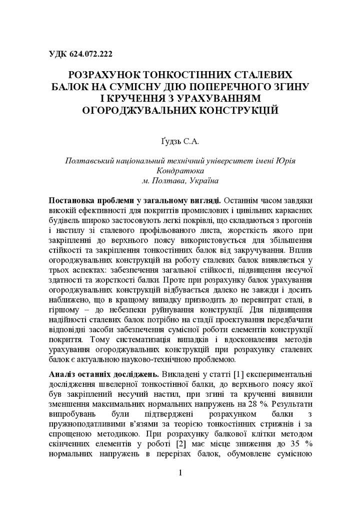 Стаття 2019/02/04До проблеми виникнення та врахування кручення в балках