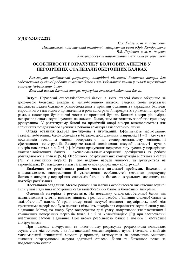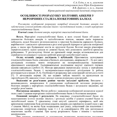 Стаття 2020/08/01Особливості розрахунку болтових анкерів у нерозрізних сталезалізобетонних балках