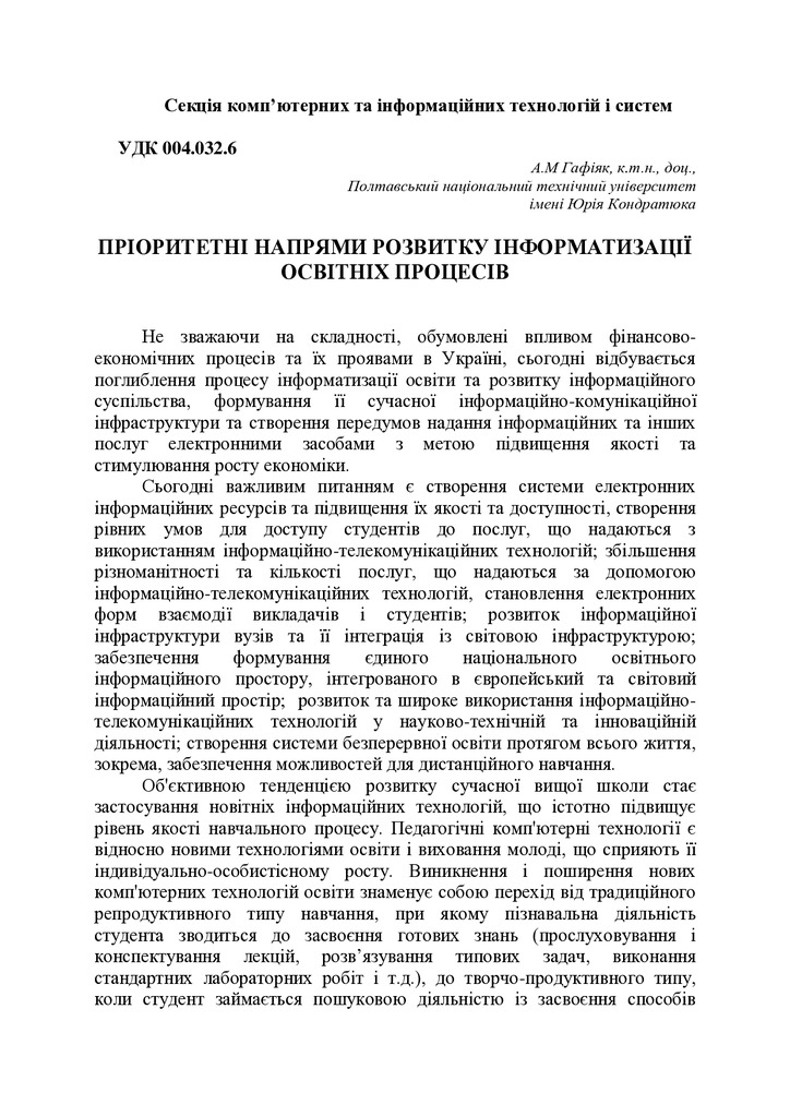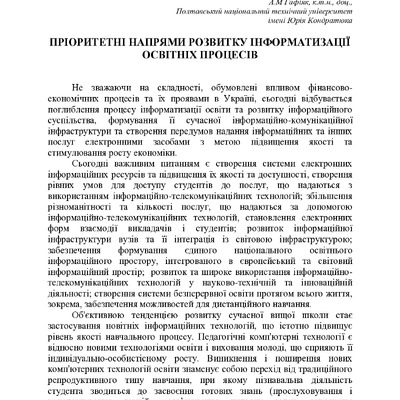 Пріоритетні напрями розвитку інформатизації освітніх процесів