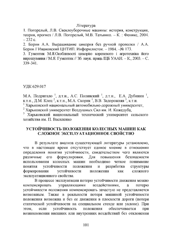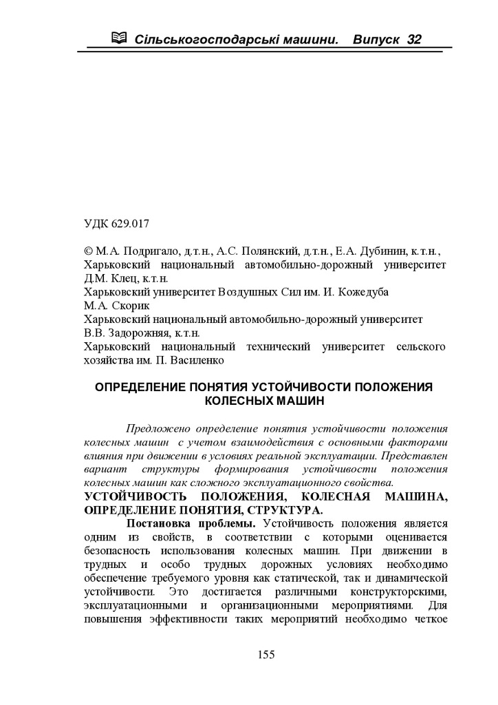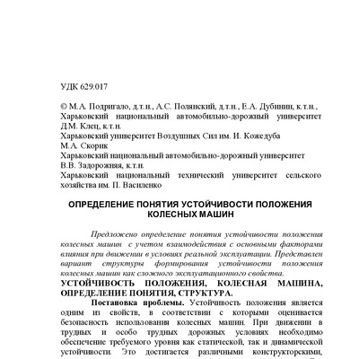 Стаття 2024/04/17Определение понятия устойчивости положения колесных машин