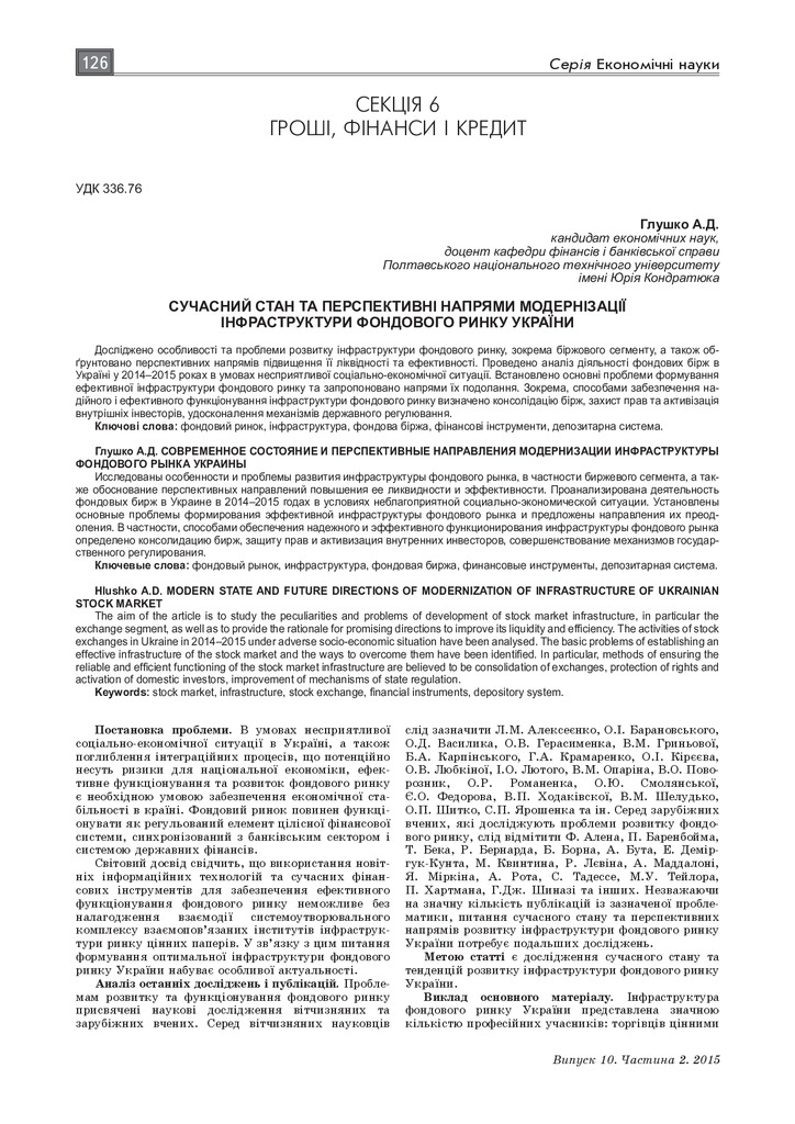 Сучасний стан та перспективні напрями модернізації інфраструктури фондового ринку України