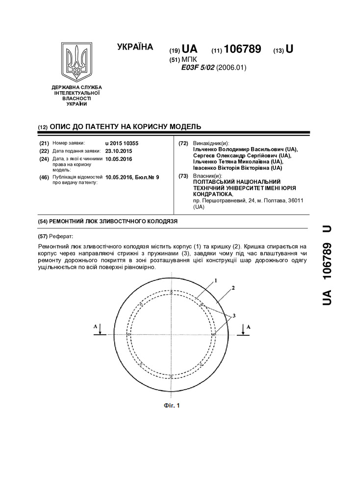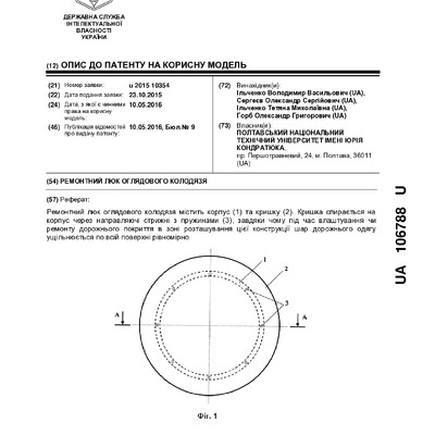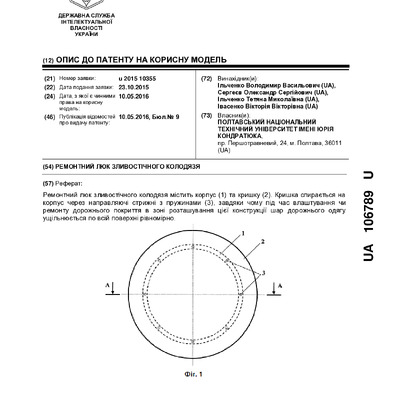 Стаття 2024/04/25Ремонтний люк зливостічного колодязя : пат. 106789