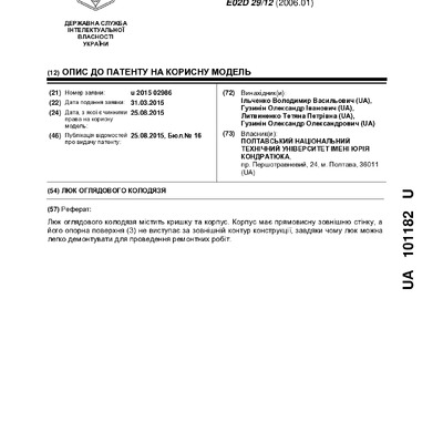 Стаття 2024/05/08Люк оглядового колодязя : пат. 101182