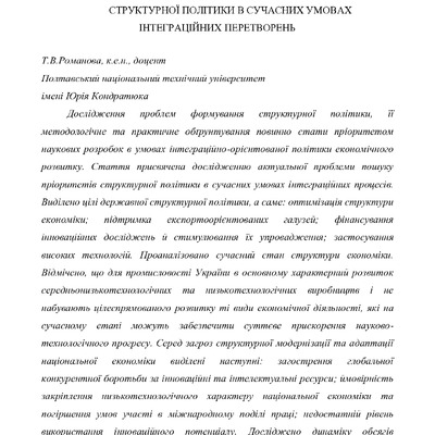 Пріоритети формування структурної політики в сучасних умовах інтеграційних перетворень