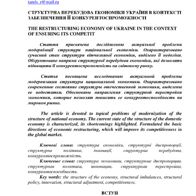 2016/08/08Структурна перебудова економіки України в контексті забезпечення її конкурентоспроможності