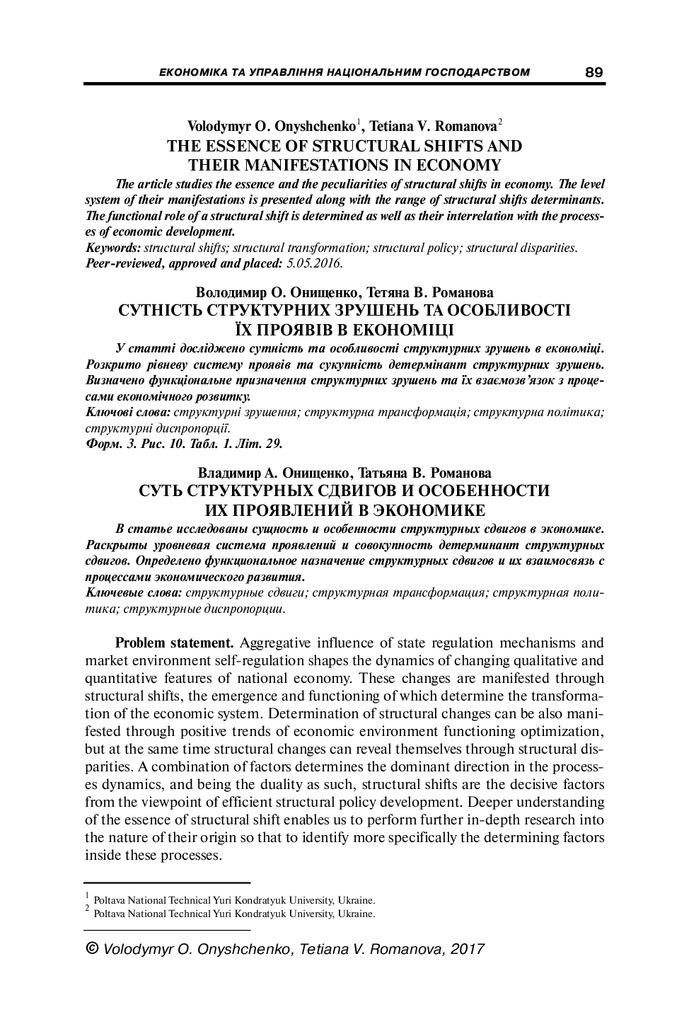 The article studies the essence and the peculiarities of structural shifts in economy. The level ...