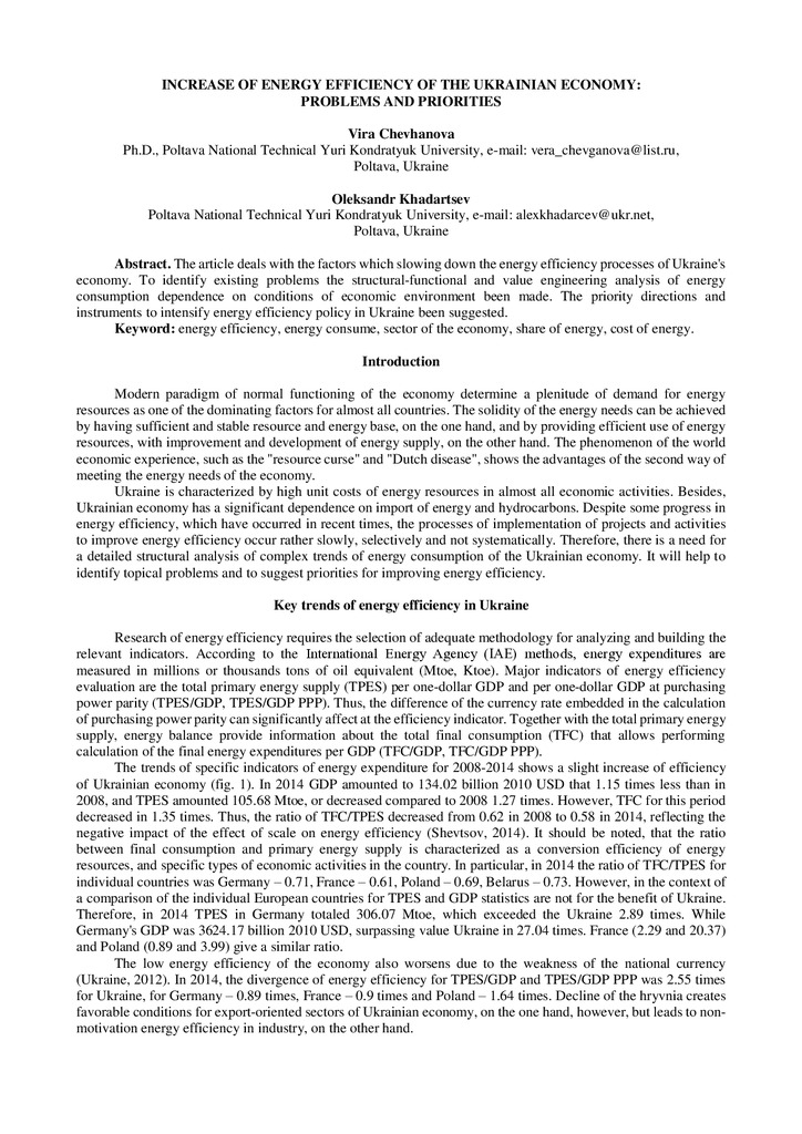Increase of energy efficiency of the Ukrainian economy: problems and priorities