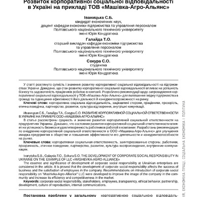 2020/10/09Розвиток корпоративної соціальної відповідальності в Україні на прикладі ТОВ «Машівка-Агро-Альянс»