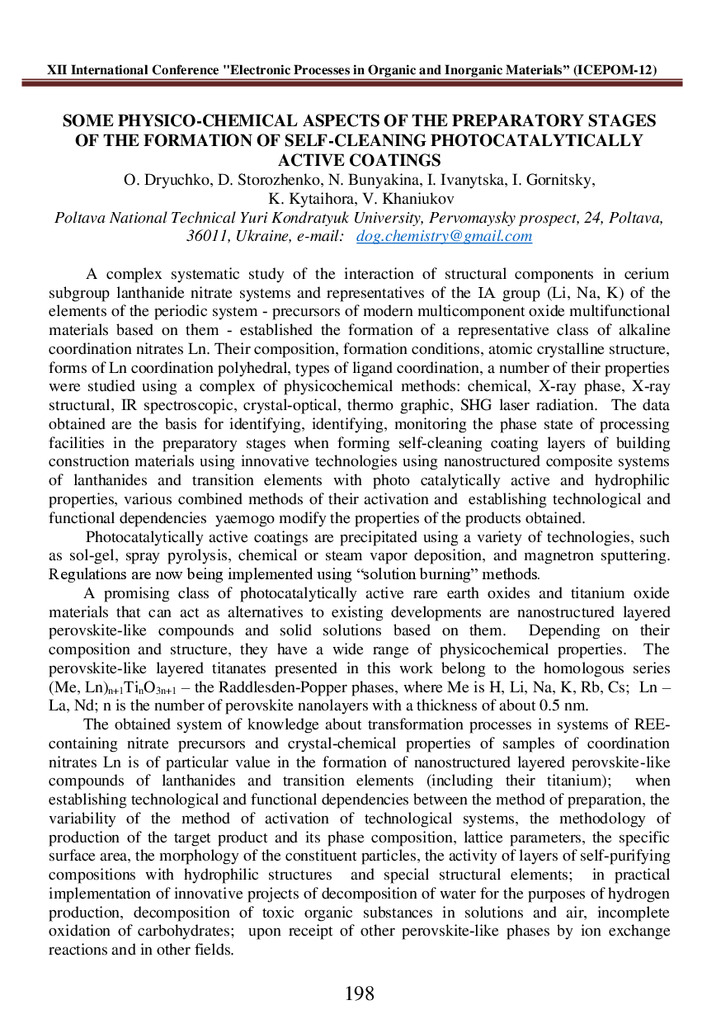 Розглянуто деякі фізико-хімічні аспекти підготовчих етапів формування самоочисних фотокаталітично...