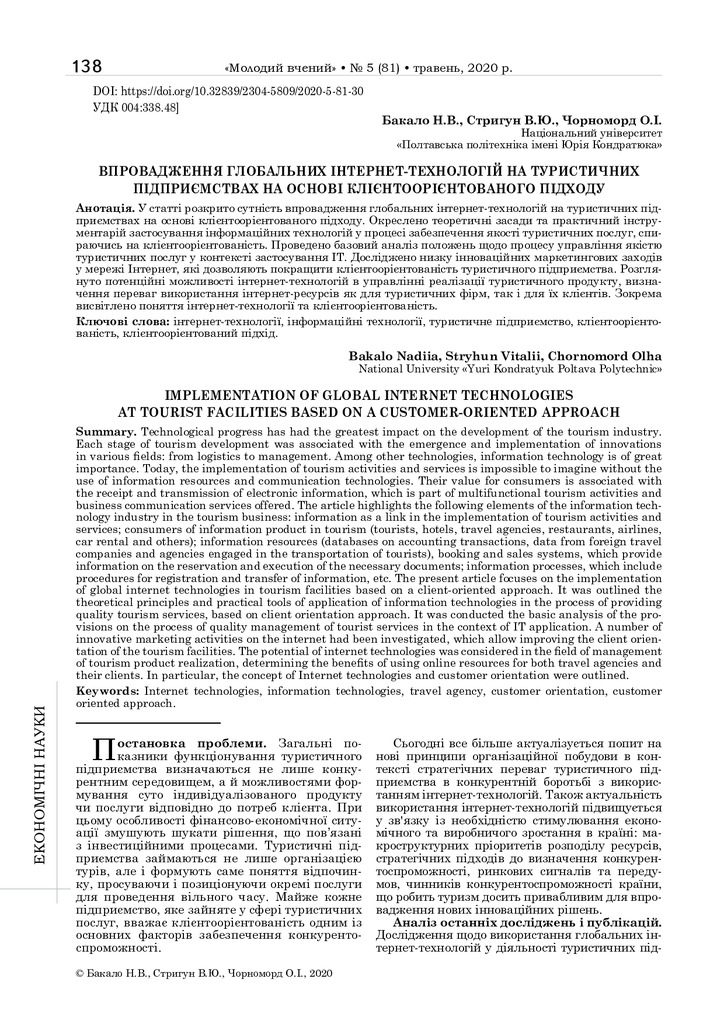 2024/04/22Впровадження глобальних інтернет-технологій на туристичних підприємствах на основі клієнтоорієнтованого підходу