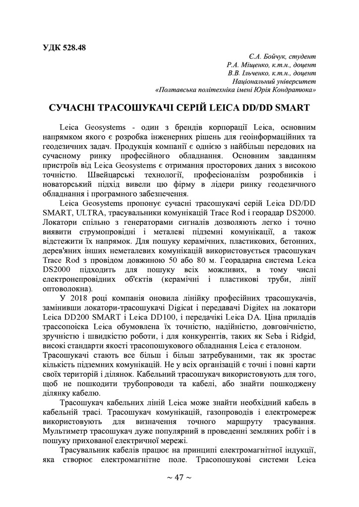 Розглянуто характеристкі трасошукачів серій Leica DD/DD Smart