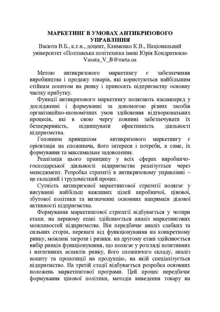 Маркетинг в умовах антикризового управління