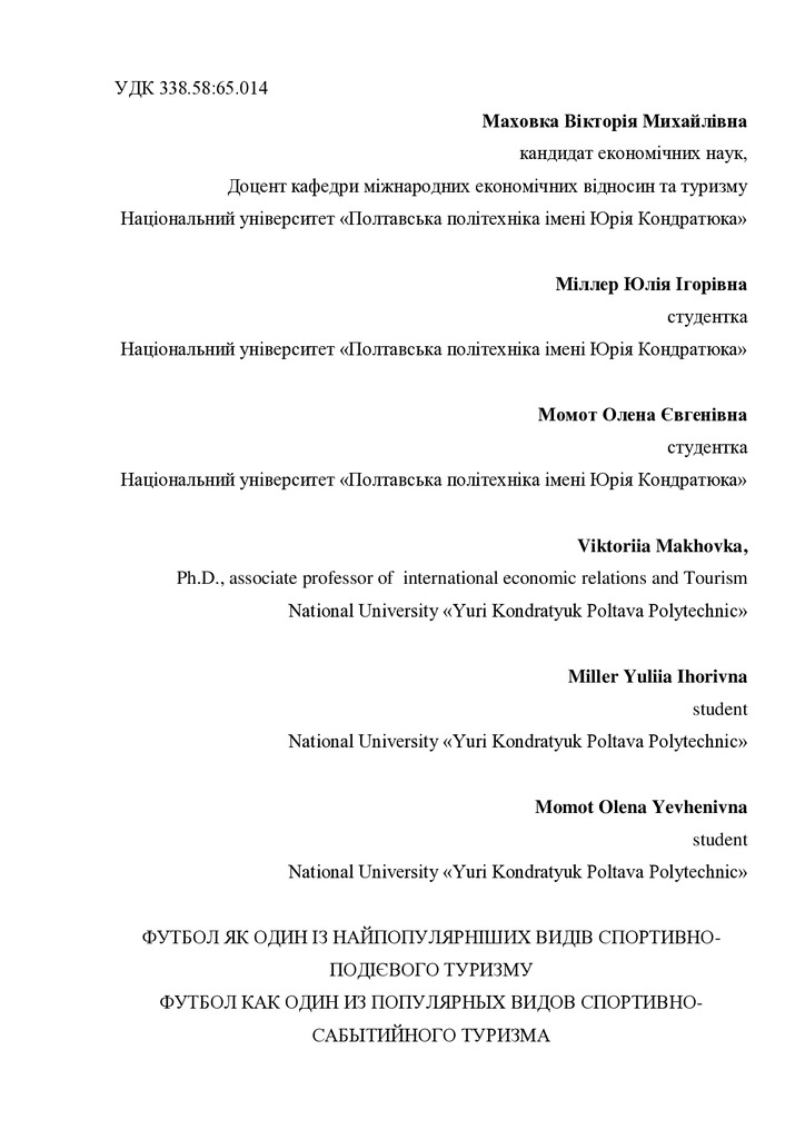 Футбол як один із найпопулярніших видів спортивно-подієвого туризму