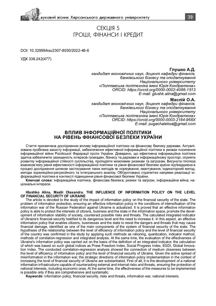 2022/11/02Вплив інформаційної політики на рівень фінансової безпеки України