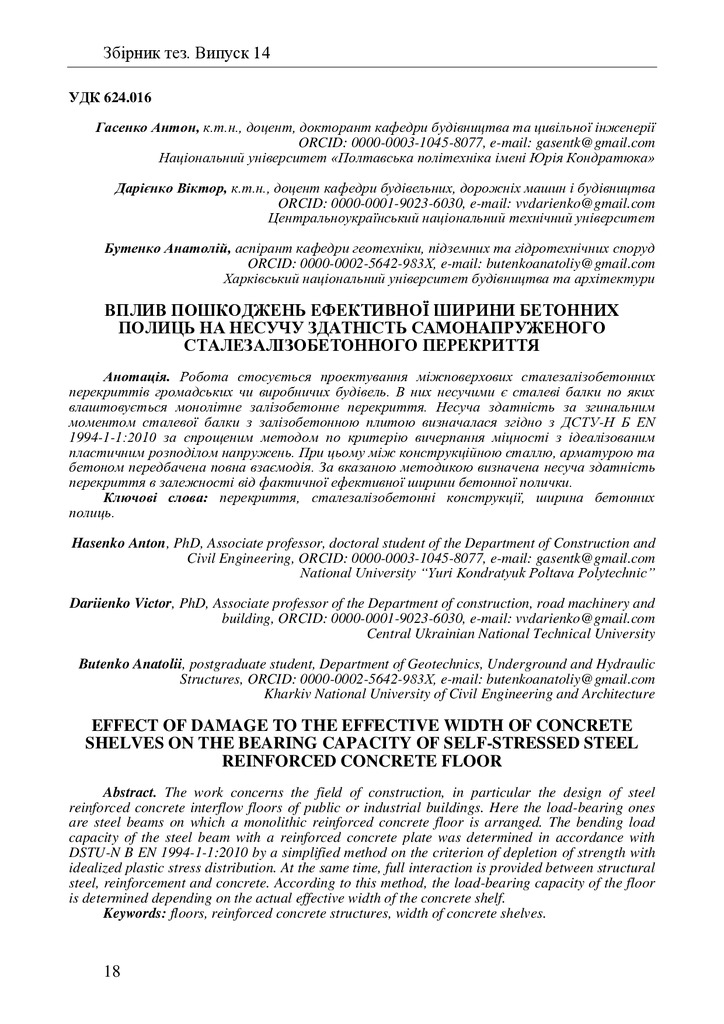 2023/07/26Вплив пошкоджень ефективної ширини бетонних полиць на несучу здатність самонапруженого сталезалізобетонного перекриття