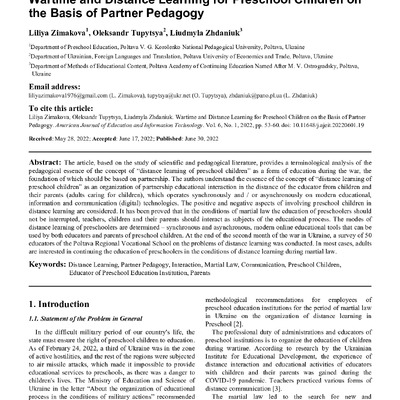2022/12/30Wartime and Distance Learning for Preschool Children on the Basis of Partner Pedagogy