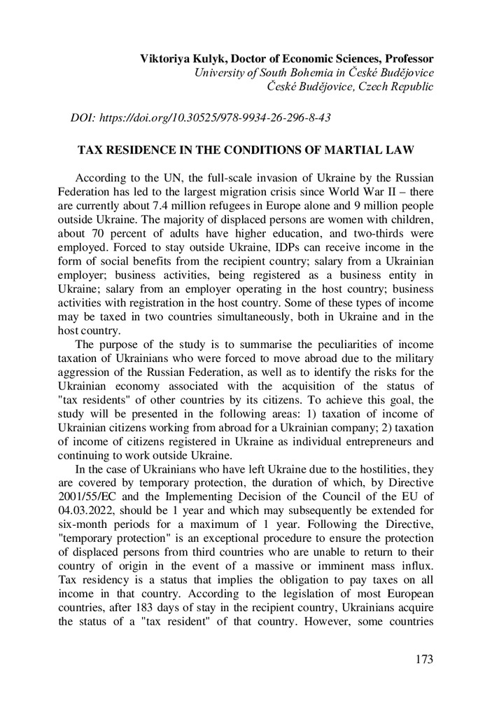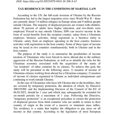 2024/03/06Tax residence in the conditions of martial law