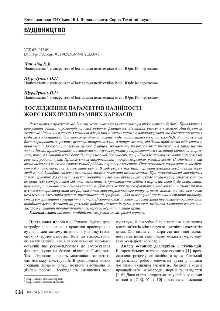 2024/04/22Дослідження параметрів надійності жорстких вузлів рамних каркасів