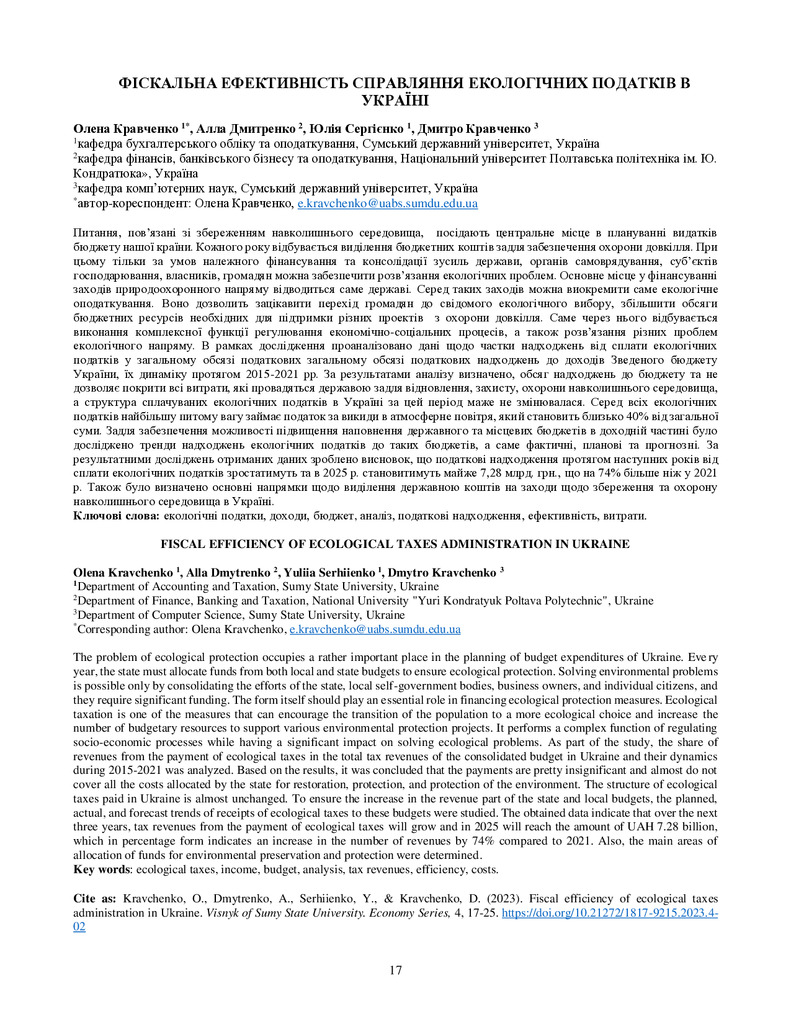2024/03/21Фіскальна ефективність справляння екологічних податків в Україні