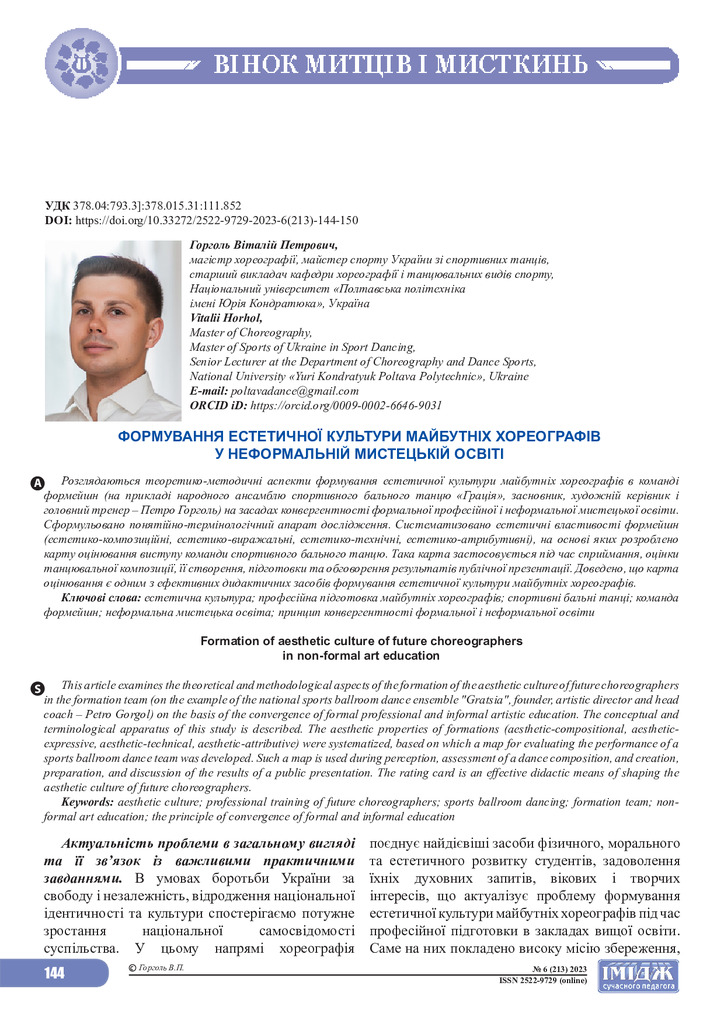 2024/04/02Формування естетичної культури майбутніх хореографів у неформальній мистецькій освіті