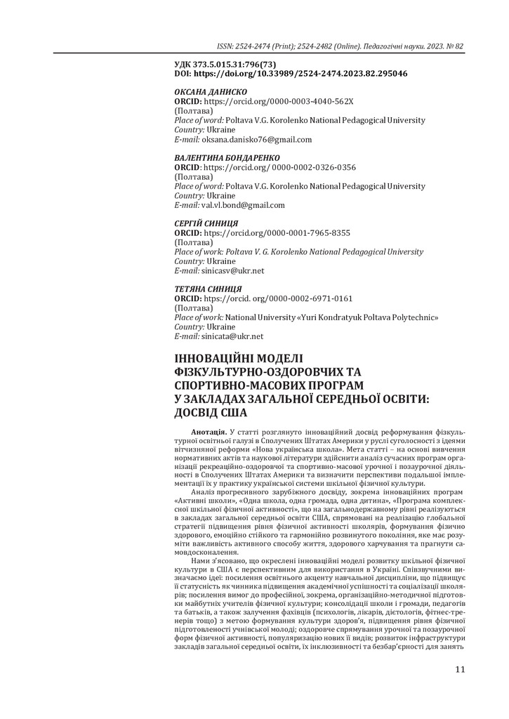 2024/03/01Інноваційні моделі фізкультурно-оздоровчих та спортивно-масових програм у закладах загальної середньої освіти: досвід США