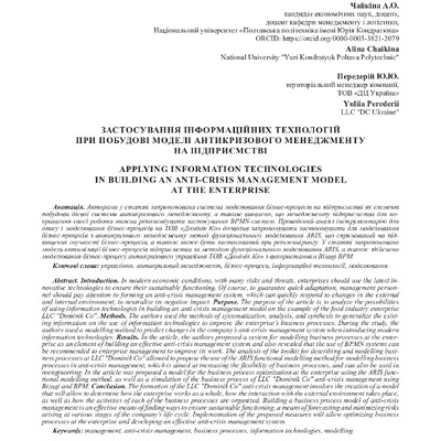 2024/04/19Застосування інформаційних технологій при побудові моделі антикризового менеджменту на підприємстві