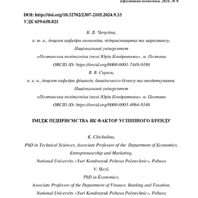 Тема іміджу підприємства як ключового фактору успішного бренду стає дедалі актуальнішою в сучасно...