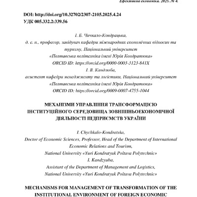 2025/04/30Механізми управління трансформацією інституційного середовища зовнішньоекономічної діяльності підприємств України