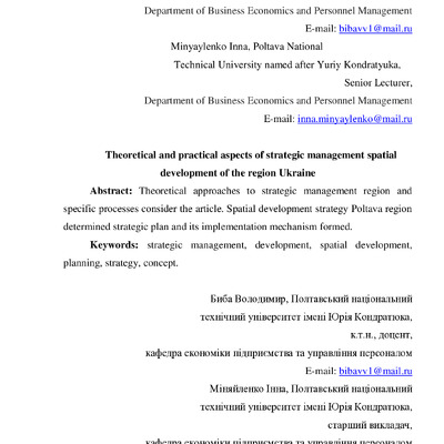 У статті розглянуто теоретичні підходи до стратегічного управління регіоном та специфіку процесів...