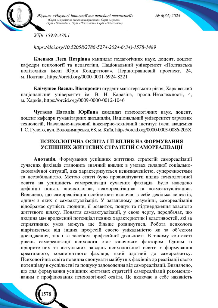 2024/07/04Психологічна освіта і її вплив на формування успішних життєвих стратегій самореалізації