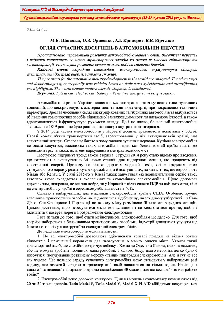 Огляд сучасних досягнень в автомобільній індустрії