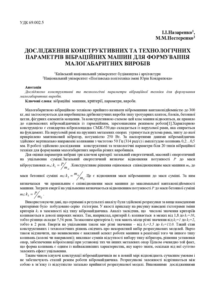 Досліджено конструктивні та технологічні параметри вібраційної техніки для формування малогабарит...