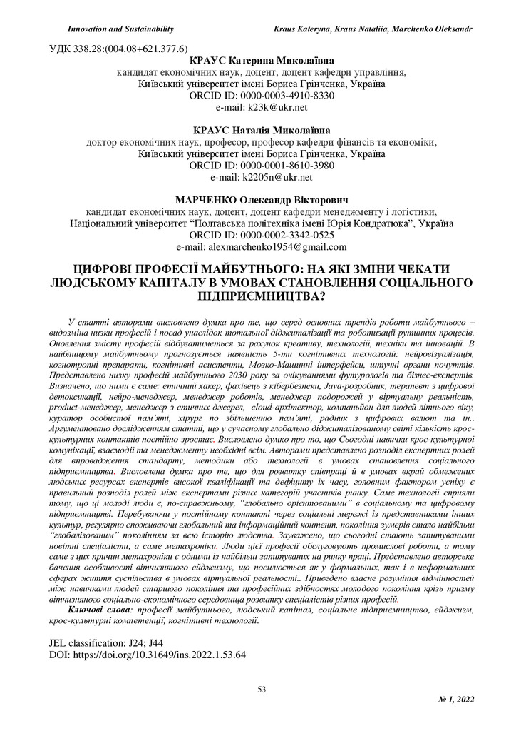 Цифрові професії майбутнього: на які зміни чекати людському капіталу в умовах становлення соціального підприємництва?